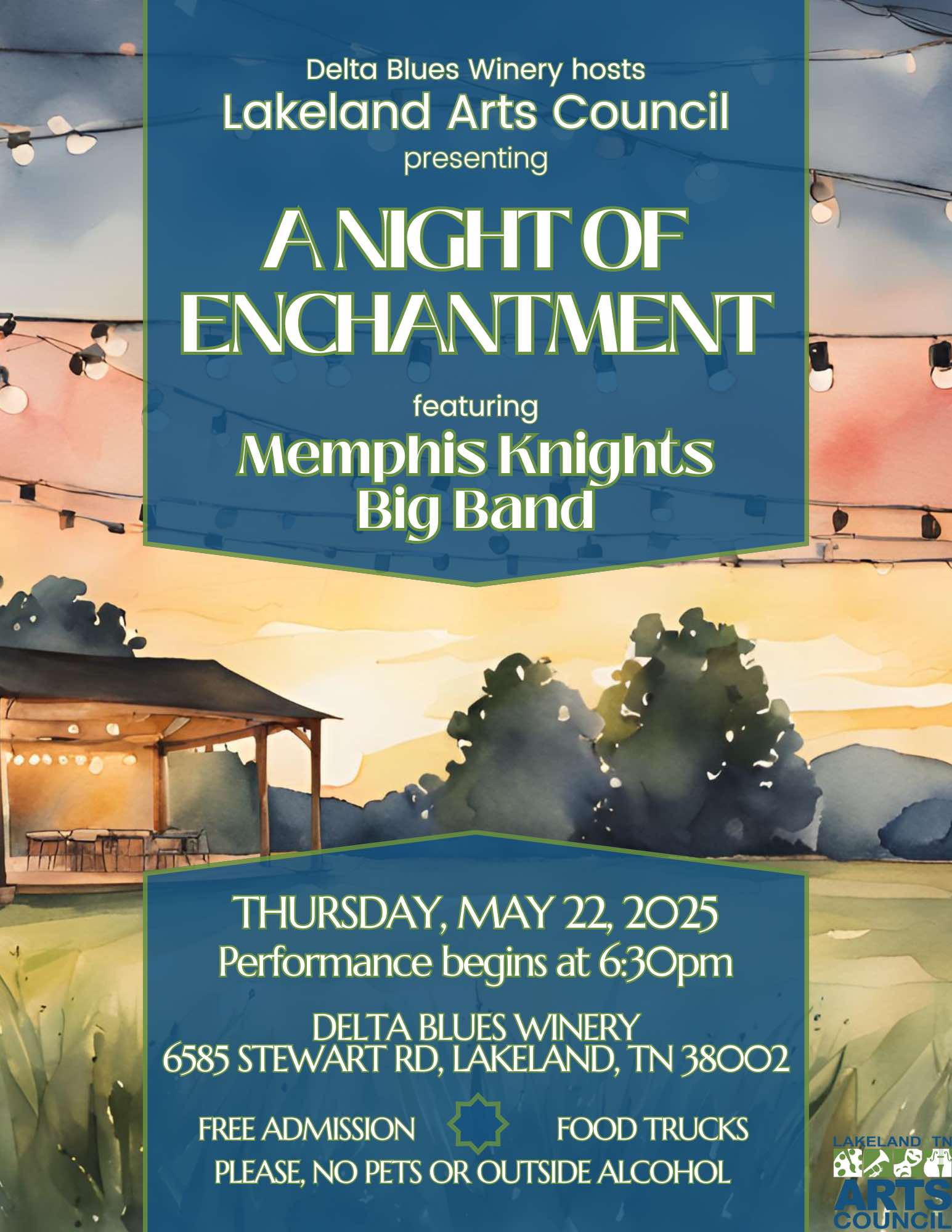 Following the success of last year’s inaugural Night of Enchantment, the Lakeland Arts Council is thrilled to announce the return of this highly anticipated event. Mark your calendars for Thursday, May 22, 2025, as the Delta Blues Winery in North Lakeland once again host an unforgettable evening of music, food, and community celebration.
