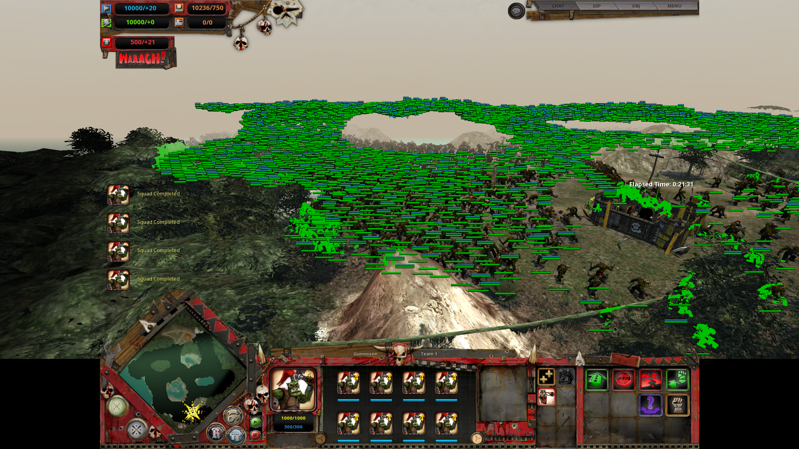 The Ork count kept on increasing, to the point where, after more than 10,000 Orks, Dawn of War hit single-digit frames per second and became unplayable. But it still ran! “I mean, 10,000+ models on screen, I call that a win for performance and stability,” Gunnisson said.