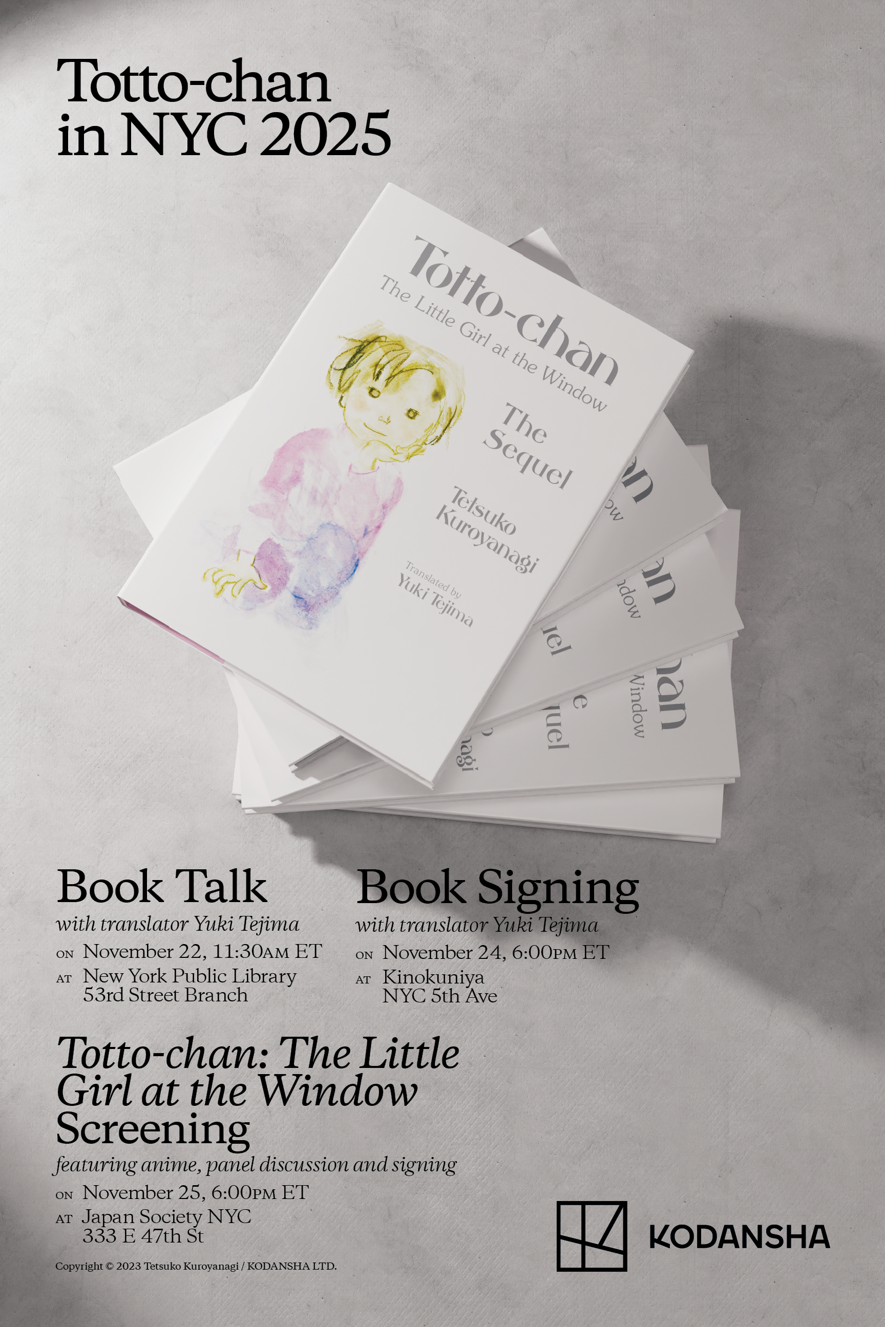 Kodansha will release Totto-chan, the Little Girl at the Window: The Sequel on November 18, 2025. The book features an English translation by Yuki Tejima and recurring spot artwork.