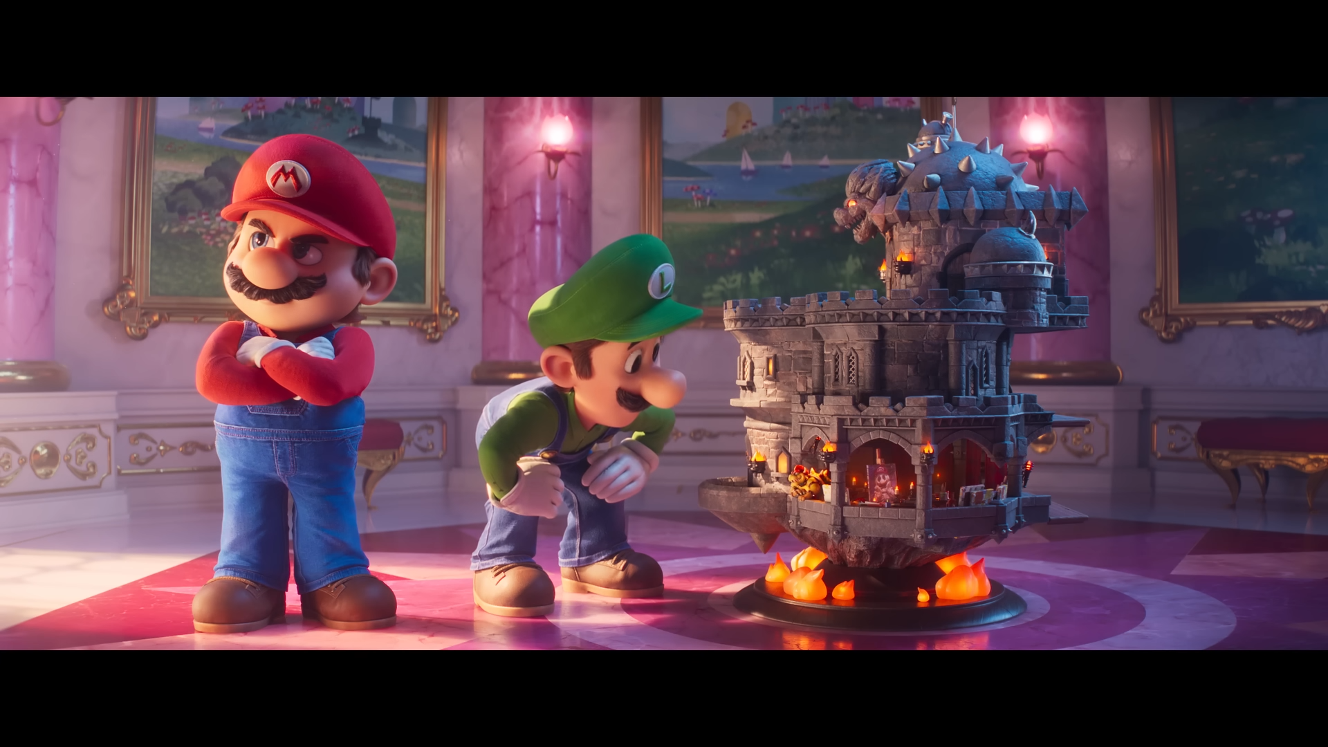 We also get a very quick glimpse at a few more of Bowser’s portraits, including Bowser Jr. inside his Koopa Clown Car, as seen in Super Mario World and Paper Mario, among others. In fact, it may be that Paper Mario is being teased by the sheer amount of painting Bowser has been getting up to, and his relationship with the Mario Bros. He’s clearly not on the best of terms with Mario at this juncture, but is much warmer when greeting Luigi. Could this softer side be setting up a Paper Mario spin-off, sequel, or change of animation style during the movie? Bowser does occasionally team up with Mario when faced with a greater threat, after all.