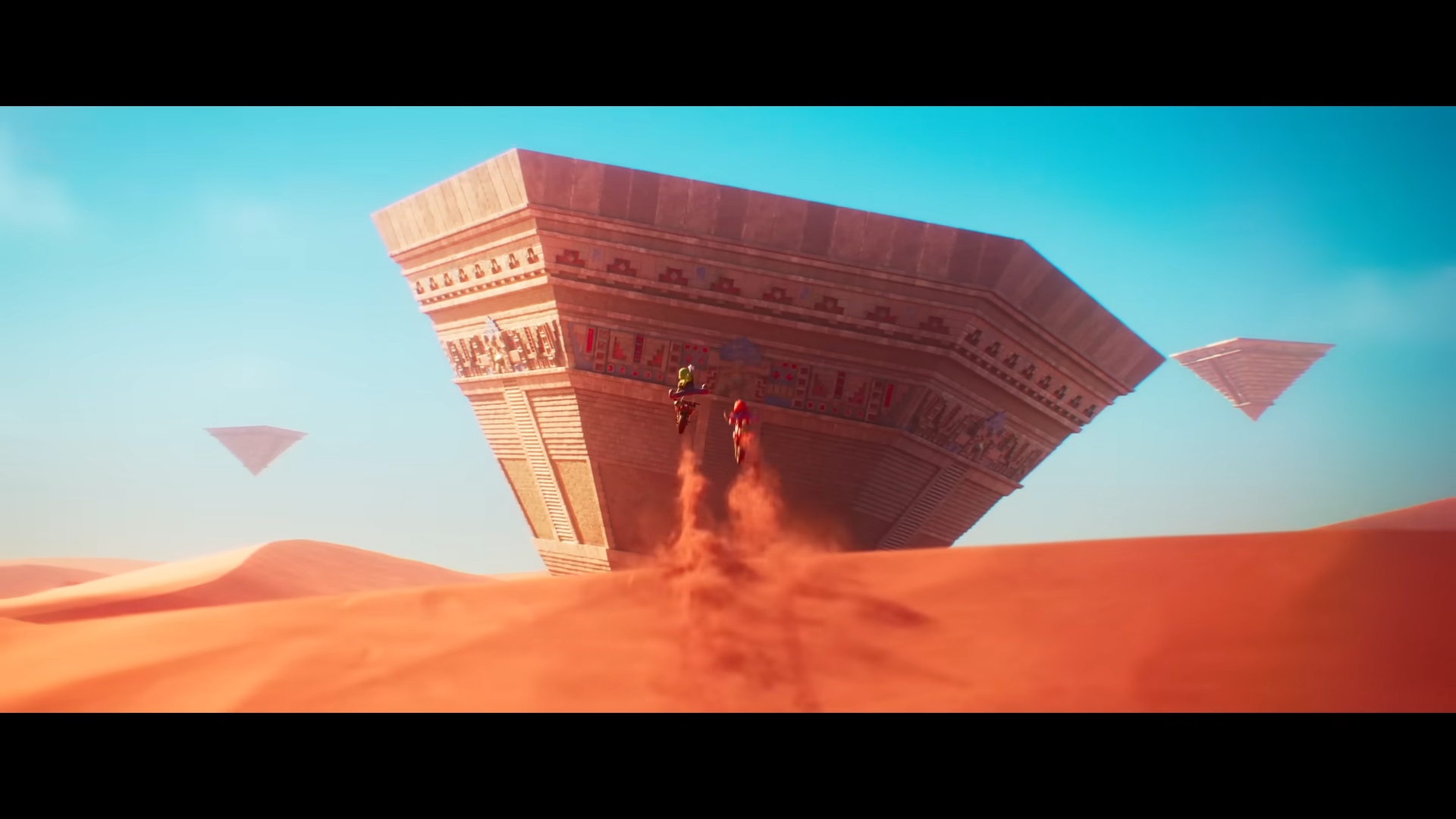 As for Mario and Luigi, it looks like they’re zooming their way toward one of the inverted pyramids from Super Mario Odyssey’s Sand Kingdom. Further evidence of this is the fact that on their motorcycles, stickers can be found relating to the town of Tostarena, which is inspired by Mexican culture. We certainly wouldn’t say no to a fun little visit here during the movie, as personally, sombrero Mario was one of my favourite looks for the little plumber in Odyssey. Earlier on, we can also see him sitting on the rooftop of what looks like Peach’s castle with the princess herself, and enjoying the Star Festival from the opening of Galaxy.