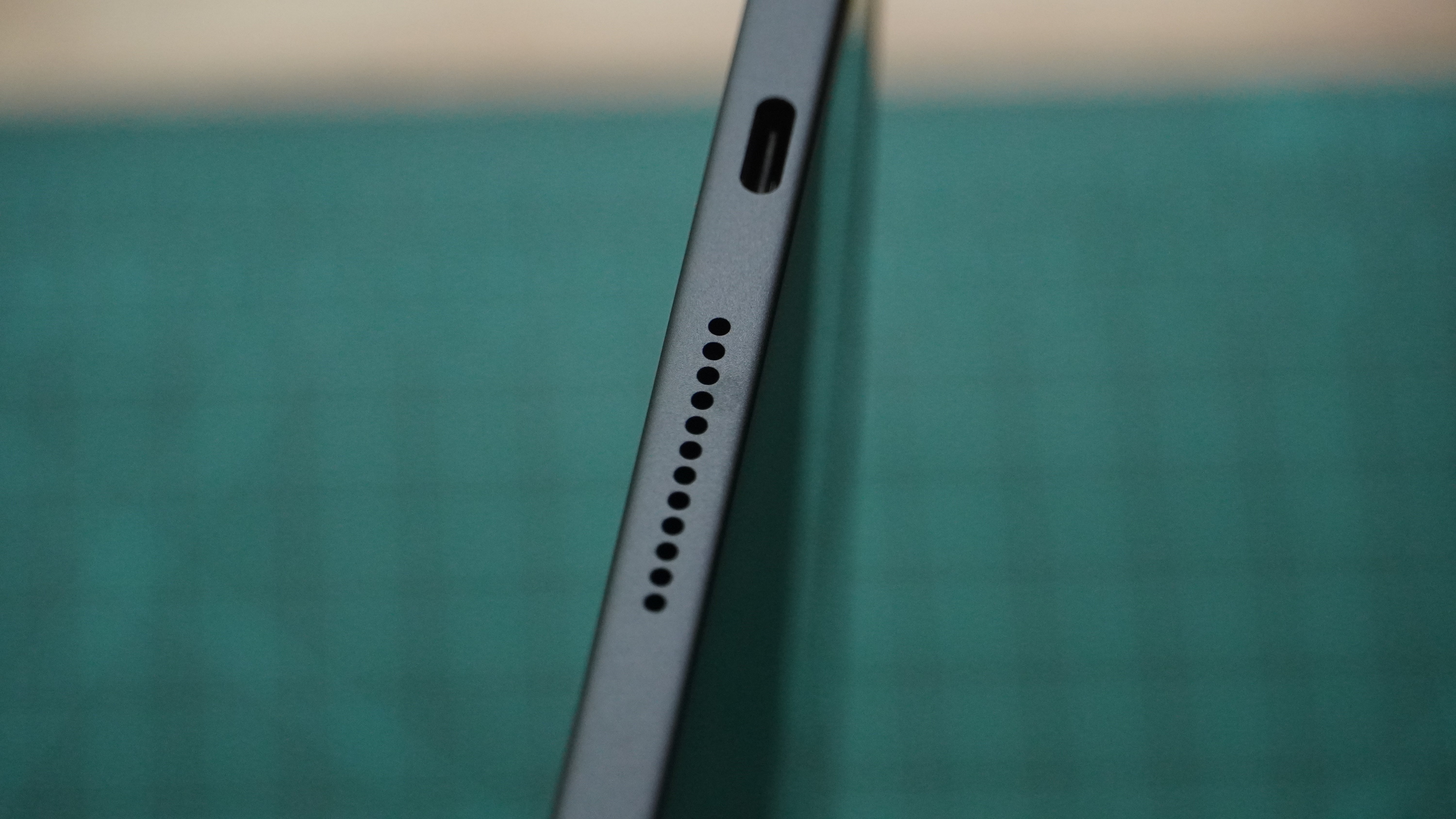 On the bottom of the tablet (or side if held in landscape), there’s a USB-C port positioned off to the right of center. This avoids having the tablet running right into your hand if you’re charging and using it at the same time. The USB-C port also supports DisplayPort output up to 4K/144Hz and has 10Gbps transfer speeds – both exciting to see.
