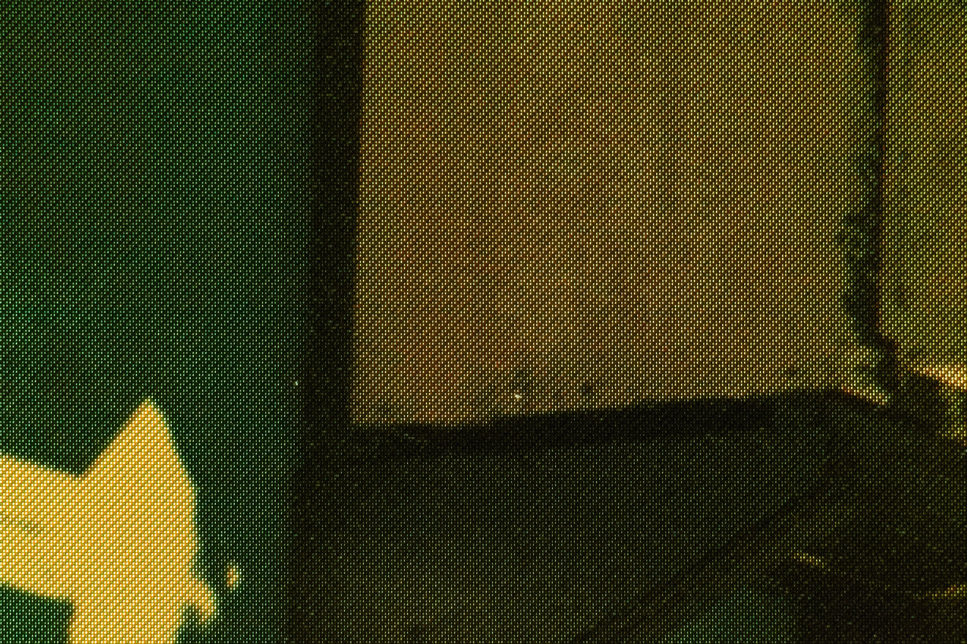The image above shows a wide-angle closeup of the LG, with the color temp calibrated and dialed in to a standard 6500K, roughly what I see sitting here at my desk. I’ve masked off the edges of the photo with the same color as the center of the screen, and it’s apparent that the periphery goes quite green. I’ll get into calibration soon, but each of LG’s “accurate” picture modes (ISF, FILMMAKER, etc.) are too red out-of-box. This might have been an effort to balance the color across the panel for different viewers, who, if they were off to the side, would be getting a picture that’s too green instead.