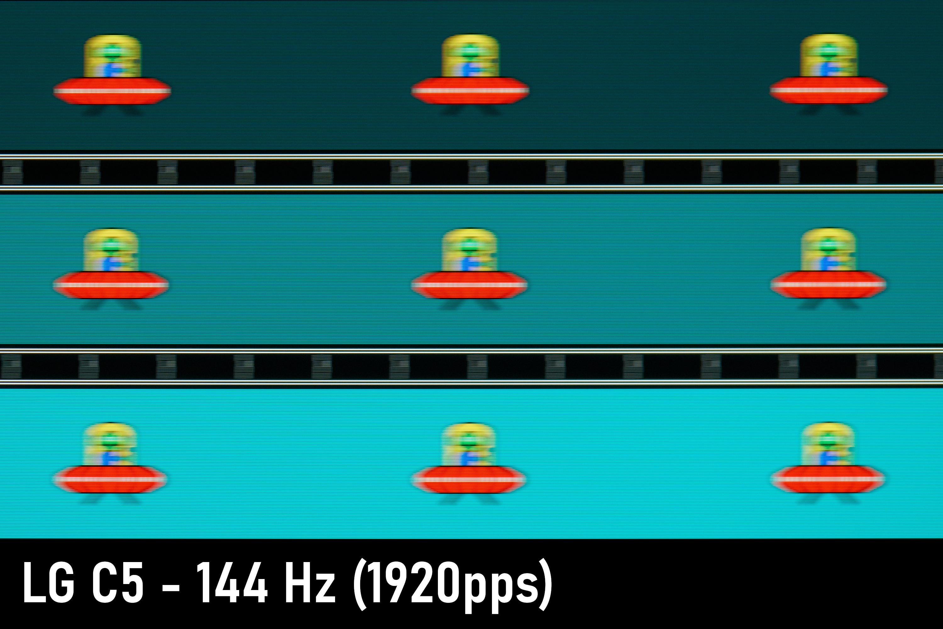 I take pursuit shots of BlurBusters’ TestUFO at a very fast 1920 pixels per second; it’s important, though, to use higher speeds to better differentiate the response time behavior of displays as their response times get quicker and quicker. But as mentioned before, there’s nothing to be really concerned about here: no smearing, trailing, or excessive overshoot. Other than the differing subpixel layout, it’d be hard to tell the C5 from the S90F.