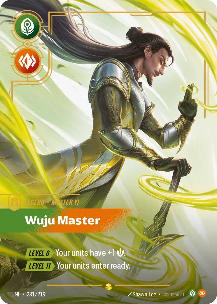 Here’s Master Yi, Wuju Master in his stunning Overnumbered art by Shawn Lee, unmasked in card art for the second time.