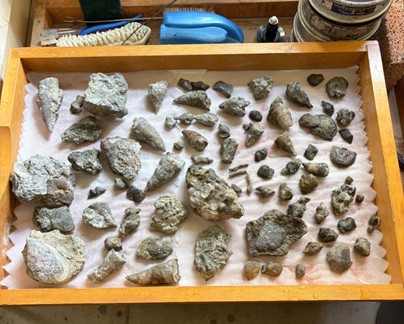 Figure 4. A bountiful harvest of fossilized taxa from the Whitewater Formation in Richmond, IN. This picture includes different types of corals, bryozoans, and brachiopods.
