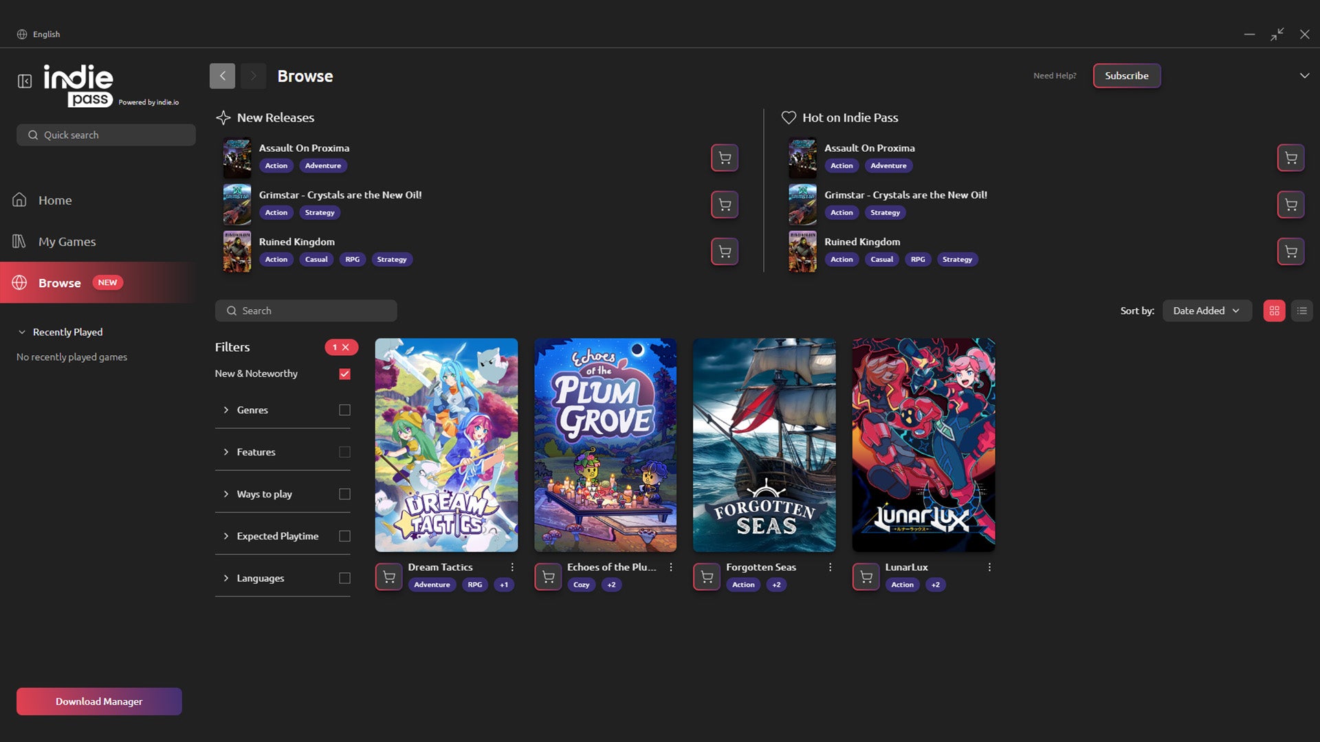 The process of playing the games available on Indie Pass is pretty straightforward. All you have to do is sign up and download the dedicated launcher, where all games that are part of the service will be available. You can, of course, search for games by title, but there are also lots of filter options to help find games that fit what you’re looking for even if you don’t know about them yet. That includes filters for genres, game features, how long it takes to beat, and supported languages.