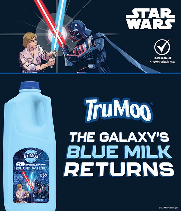 “For decades, fans have watched Luke Skywalker on Tatooine and wondered what that blue milk actually tastes like. That question is what made this product so exciting for us to bring to market,” said Rachel Kyllo, Chief Marketing Officer of Dairy Brands at Dairy Farmers of America. “When fans started asking for it back, we didn’t hesitate. TruMoo Blue Milk is about turning a piece of movie history into something you can actually enjoy at your kitchen table.”