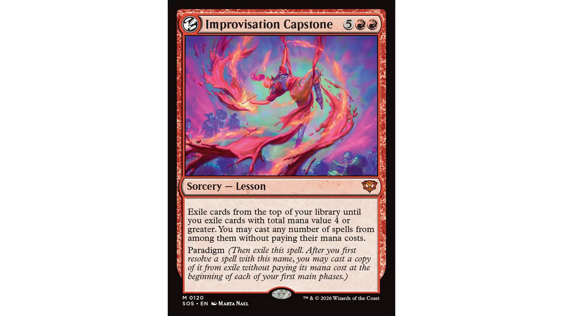 Still with us? It’s a busy set, keyword-wise, but Paradigm is really neat. It’s found on sorceries like Improvisation Capstone, triggering them once when initially played. Paradigm spells are then exiled and available on your first main phase as a copy that can be played without its mana cost.